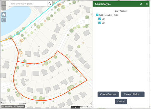 - Say you're a planner at a gas utility who wants to know the estimated cost to extend gas service to a new community located at Cortez Ct, Naperville, Illinois, 60563. Use the feature template picker and choose the Plastic PVC main, and then sketch in the yellow path. The result shows that the cost to install the mainline gas pipe is more than $2 million.