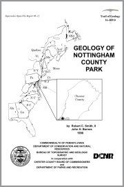 Smith, R. C., II, and Barnes, J. H., 1998, Geology of Nottingham County Park: Pennsylvania Geological Survey, 4th ser., Trail of Geology 16–009.0, 41 p. [Available online.]