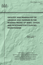 Smith, R. C., II, and Barnes, J. H., 2014, Geology and mineralogy of uranium and thorium in the Reading Prong of Berks, Lehigh, and Northampton Counties, Pennsylvania: Pennsylvania Geological Survey, 4th ser., Mineral Resource Report 97, 177 p. [Available online.]