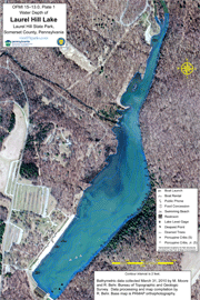 Behr, Rose-Anna, 2015, Water depth of Laurel Hill Lake—Laurel Hill State Park, Somerset County, Pennsylvania: Pennsylvania Geological Survey, 4th ser., Open-File Report OFMI 15–13.1, 3 pls. [Available online.]