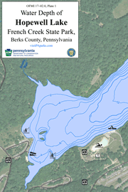 Behr, Rose-Anna, 2017, Water depth of Hopewell Lake and Scotts Run Lake—French Creek State Park, Berks County, Pennsylvania: Pennsylvania Geological Survey, 4th ser., Open-File Report OFMI 17–02.0, 5 pls. [Available online.]