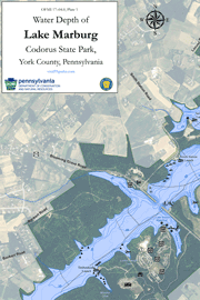 Behr, Rose-Anna, 2017, Water depth of Lake Marburg—Codorus State Park, York County, Pennsylvania: Pennsylvania Geological Survey, 4th ser., Open-File Report OFMI 17–04.0, 3 pls. [Available online.]