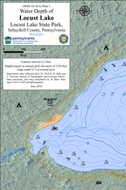 Behr, Rose-Anna, 2018, Water depth of Locust Lake—Locust Lake State Park, Schuylkill County, Pennsylvania: Pennsylvania Geological Survey, 4th ser., Open-File Report OFMI 18–02.0, 3 pls. [Available online.]